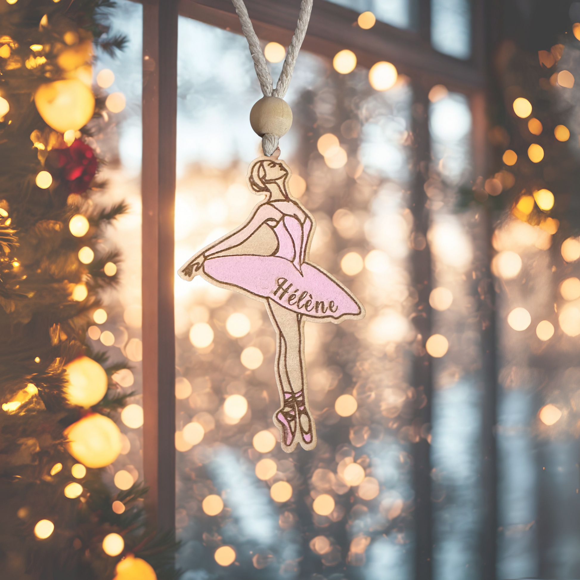 Boule de Noël en bois naturel avec gravure personnalisée.