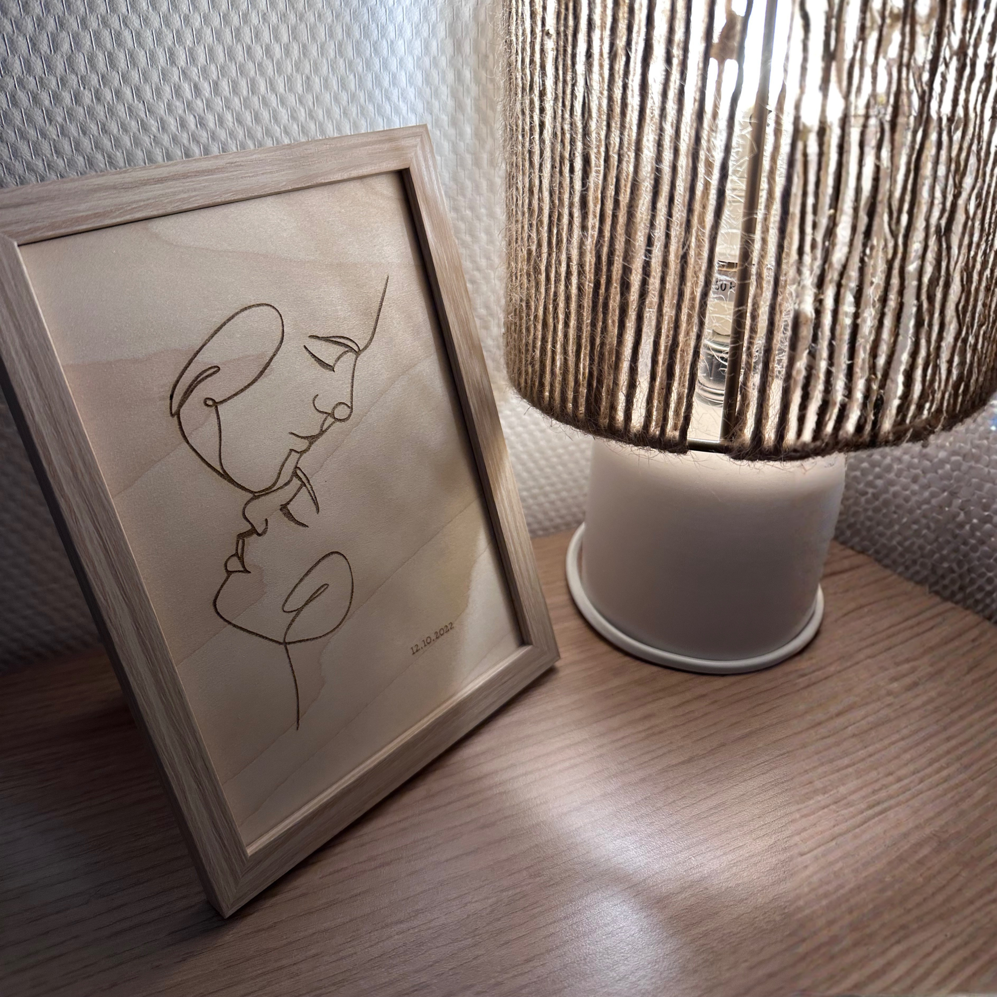 Chaque cadre est conçu et gravé dans mon atelier avec soin.