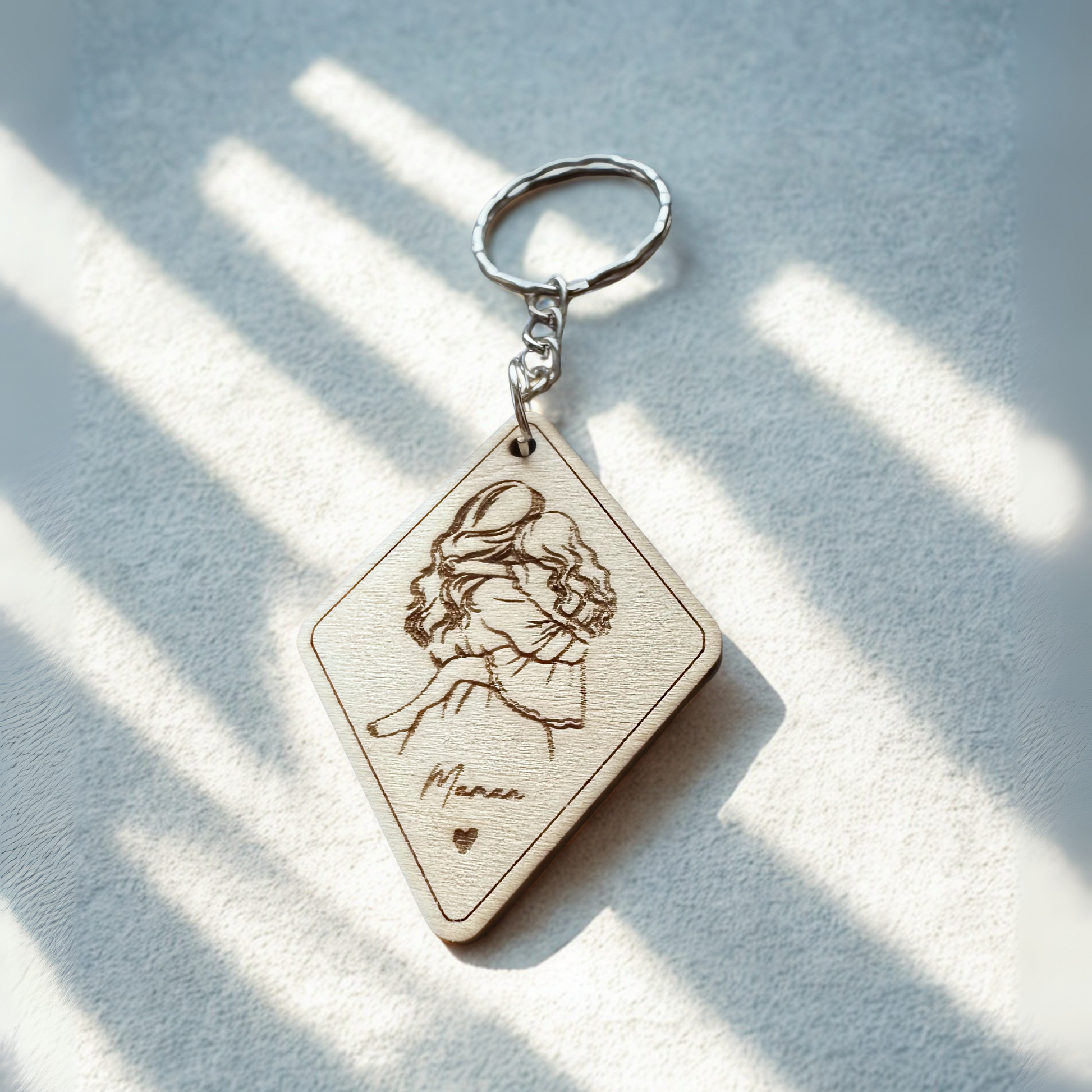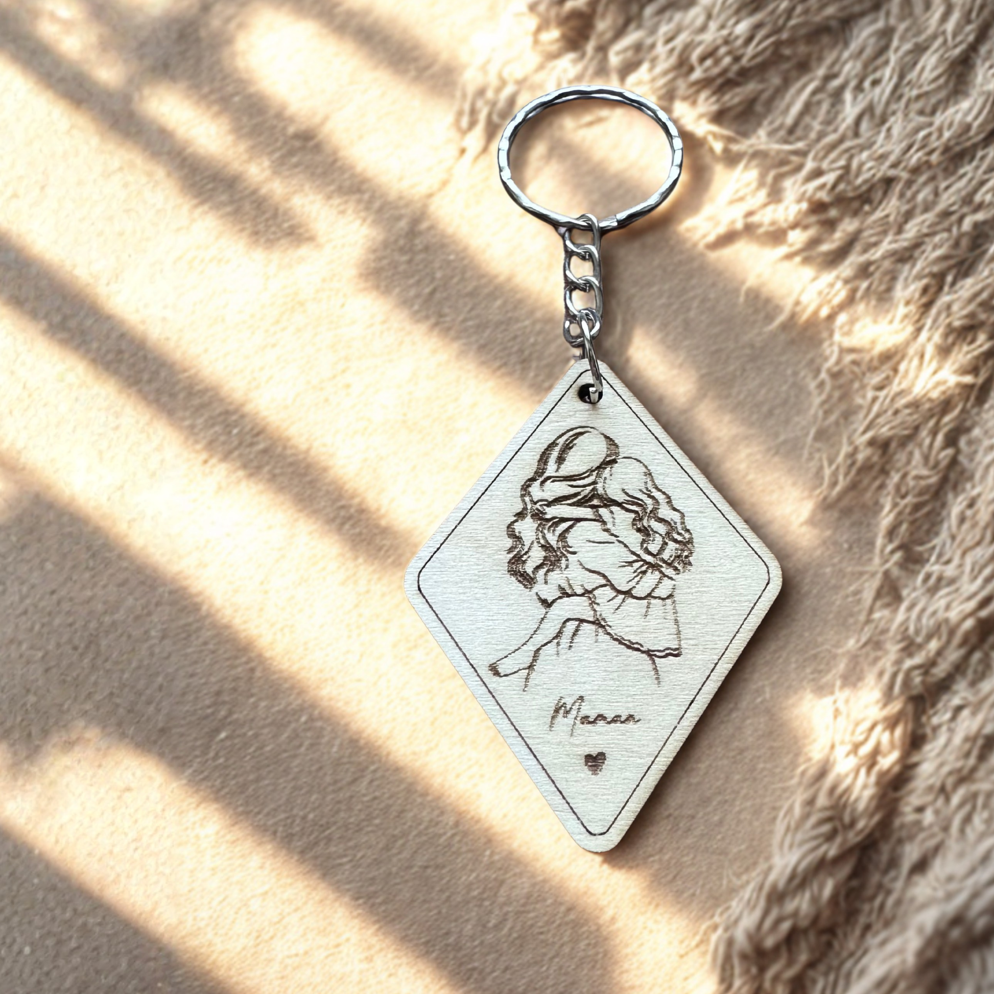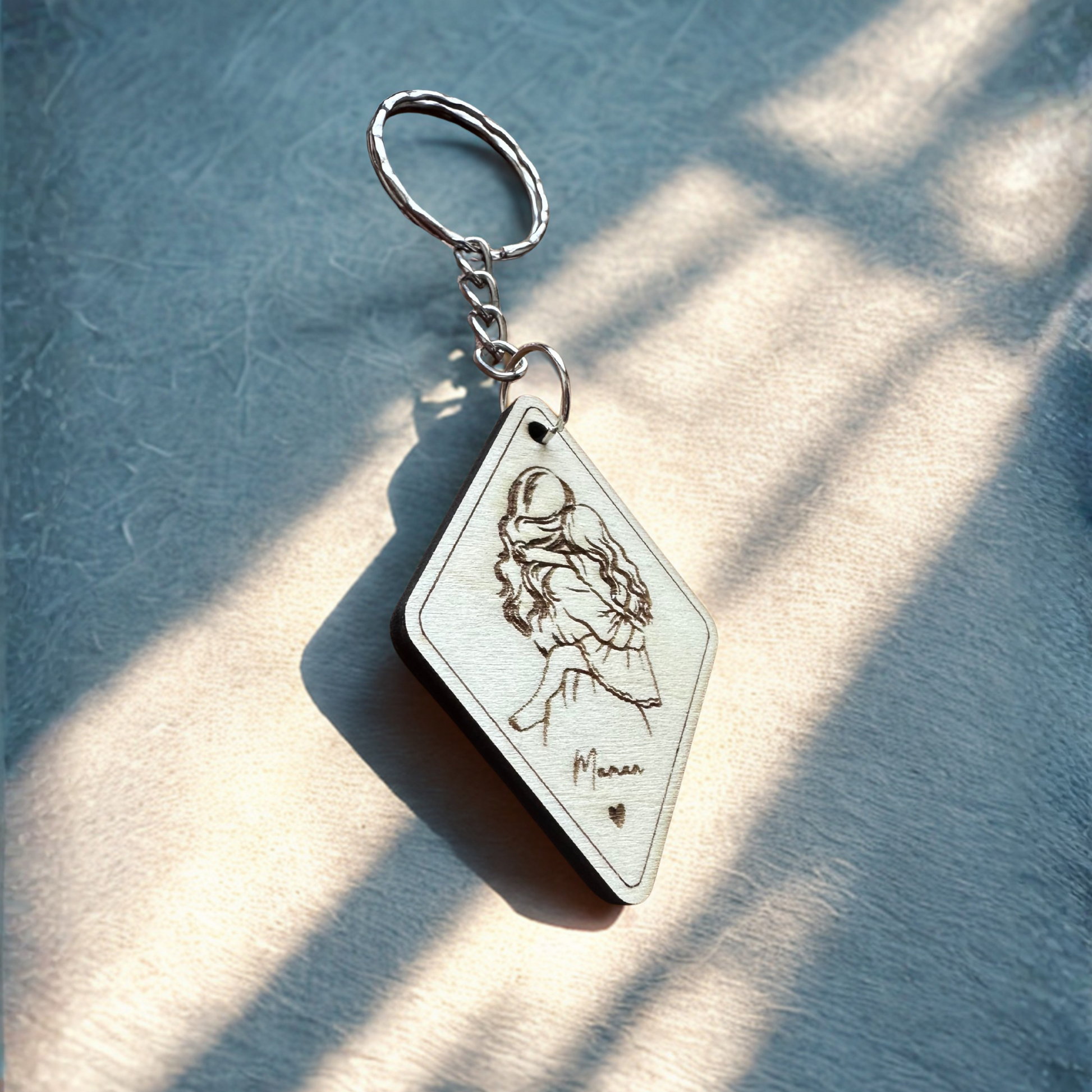 Ce porte-clés en bois gravé au laser est le cadeau idéal pour votre maman ou pour vous ! Un porte clé à emmener partout pour avoir toujours une pensée avec vous.